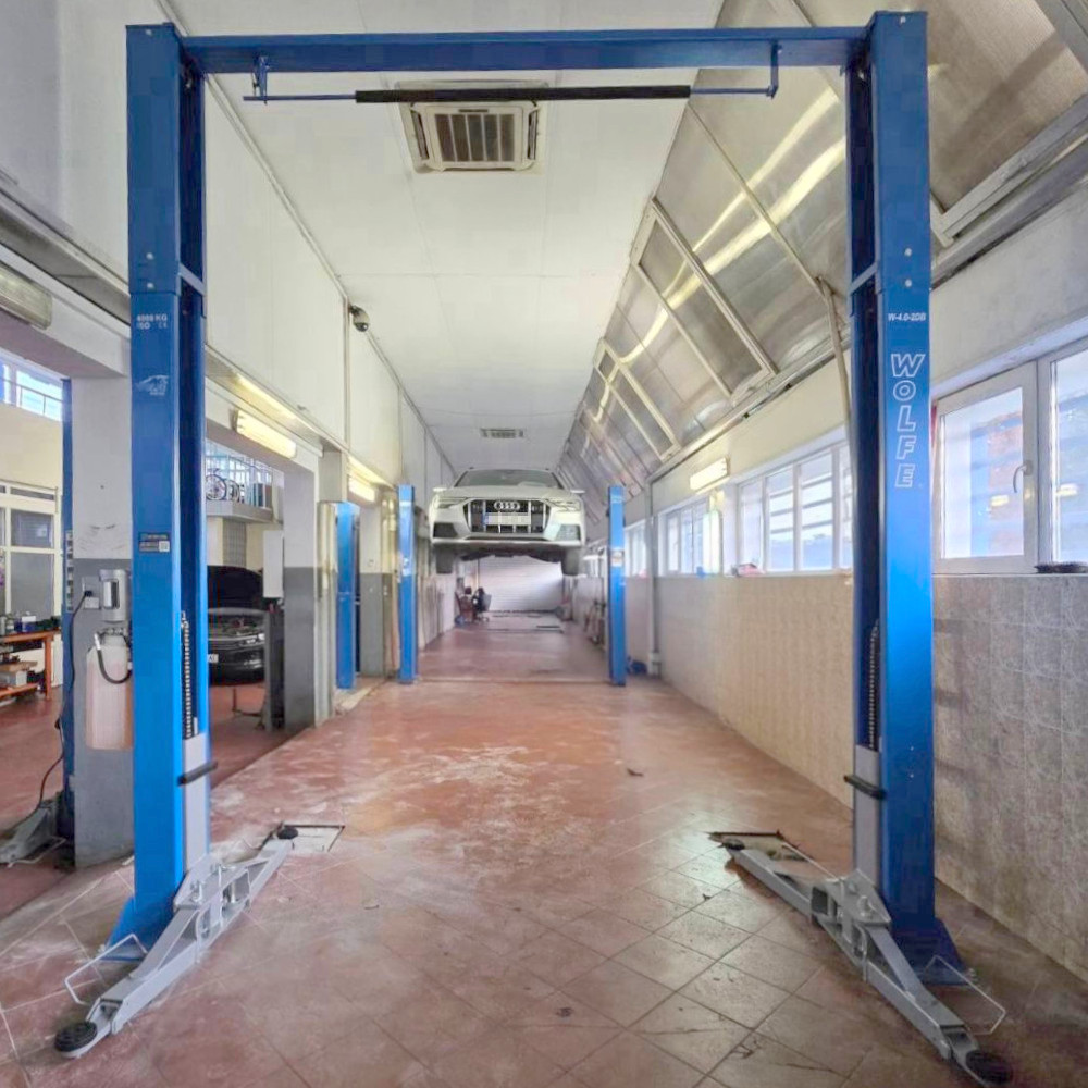 Подемник двуколонен 4,0t с горна синхронизация електрохидравличен с ръчно освобождаване на заключващия механизъм WOLFE Premium line